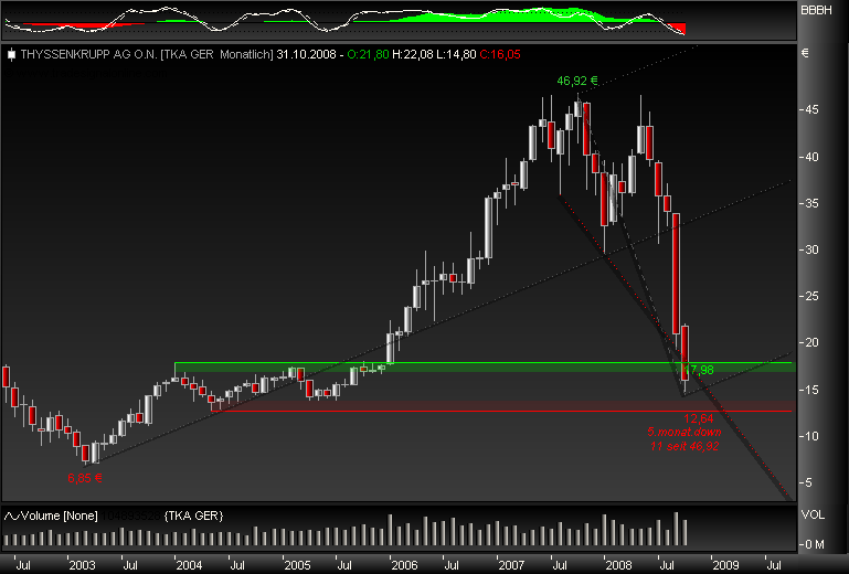 das es sich hier nicht um einen reinen Stahlkonzern handelt, sondern ein Mischkonzern mit viel Technologieanteil ist. 16€ halte ich nach unten für übertrieben. Aber was heist das bei dem derzeitigen Börsenumfeld schon.