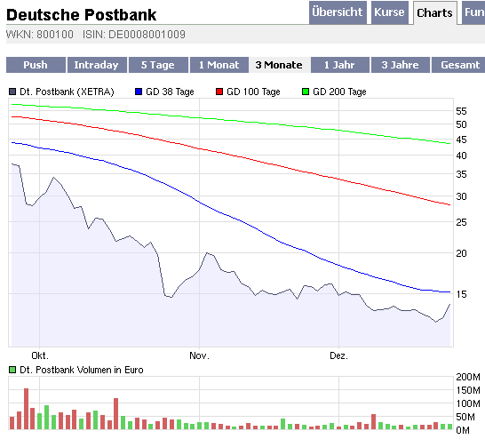Waren die 12,19 EUR jetzt der Tiefpunkt?­ Oder könnte die Postbank 2009 zur zweiten VW Aktie werden?