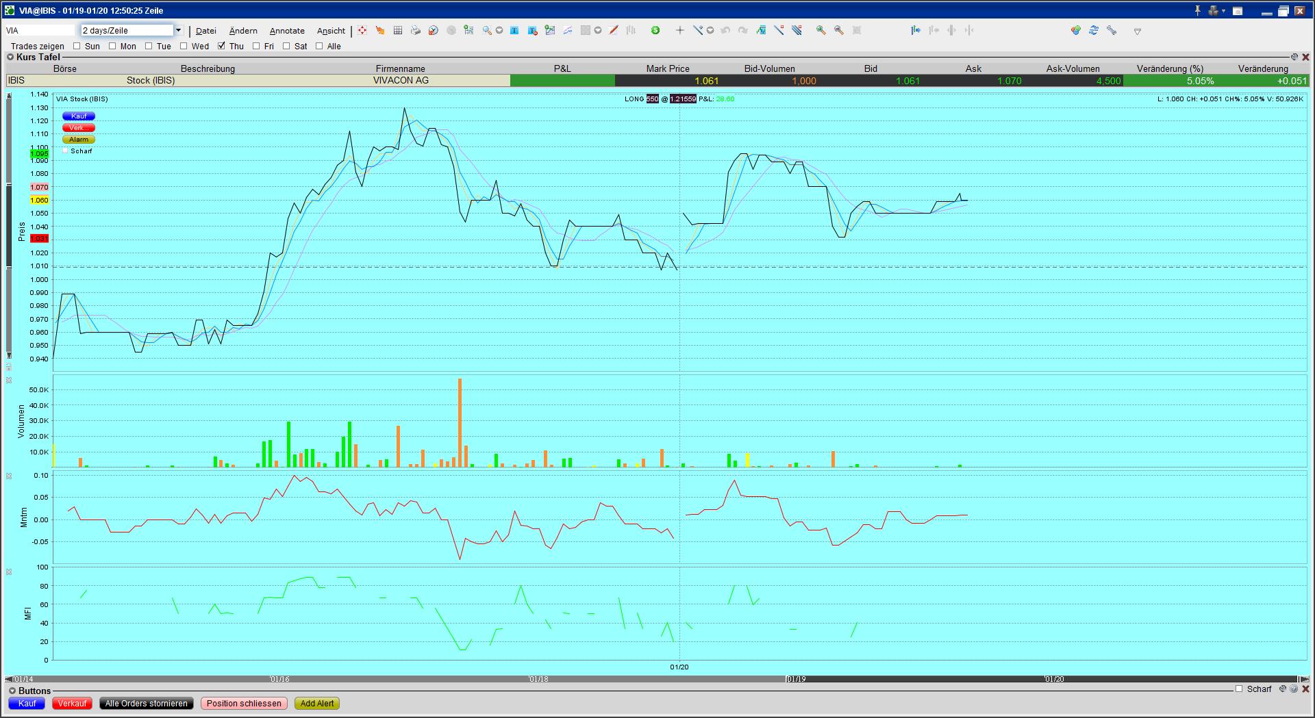 Am 19.01.2011 ist bei Vivacon AG das Chartsignal GD 38 aufgetreten. Das Chartsignal GD 38 ist ein above Signal.