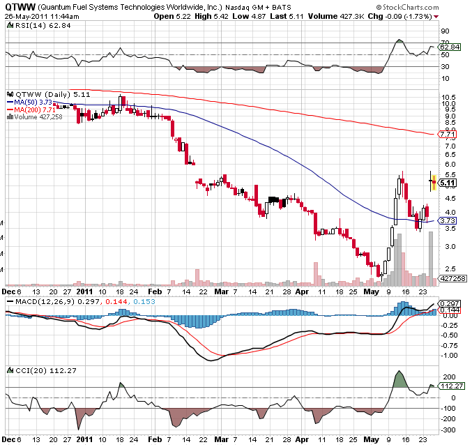 IRVINE, Calif., May 27, 2011 /PRNewswire/ -- Quantum Fuel Systems Technologies Worldwide, Inc. (Nasdaq: QTWW) announced that the U.S. Army's Tank Automotive Research, Development and Engineering Center (TARDEC) demonstrated the Clandestine Extended Range Vehicle (CERV) as part of special events ramping to the Indianapolis 500. The U.S. Army labeled the CERV as one of the "greenest technologies" and demonstrated how its advanced hybrid electric powertrain developed by Quantum and TARDEC saves taxpayer dollars and Soldiers' lives.