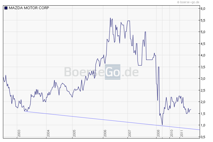 momentan sieht´s echt nicht lustig aus. Obwohl der CX-5 sich super verkauft, der neue 6 er fast schon in den Startlöchern steht und jeder weiß, dass weitere 5 neue Modelle folgen, dreht der Kurs nicht. Ich frage mich jetzt schon, wo denn nun der Boden ist.