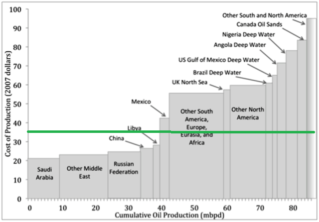 2016 ist nicht 2008. Als Öl 2008 bei 140$ notierte lag der Preis um 370% über den Produktionkosten der großen Förderländer.