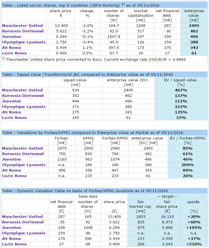 Für meine Begriffe gibt es bzg. Lazio ein fast unvorstellbarer Abweichung von übliche Bewertungen (Forbes/KPMG sowi Börse) von Vereine aus den wichtigen Fußballänder.