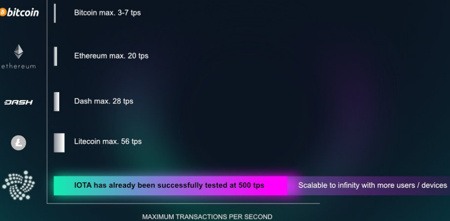 Tangle hebt die Skalierungsprobleme der Blockchain auf, arbeit besser/effizienter, je mehr Transkationen getätigt werden und diese sind zudem noch deutlich (!) günstiger als beim Bitcoin.