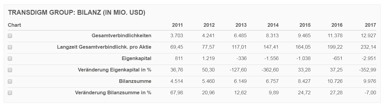 Das mit dem negativen EK ist bei Transdigm ja schon lange so (siehe Screenshot unten). Aber klar, irgendwann ist das ausgereizt und wenn die Zinsen ansteigen, wird das natürlich immer riskanter.