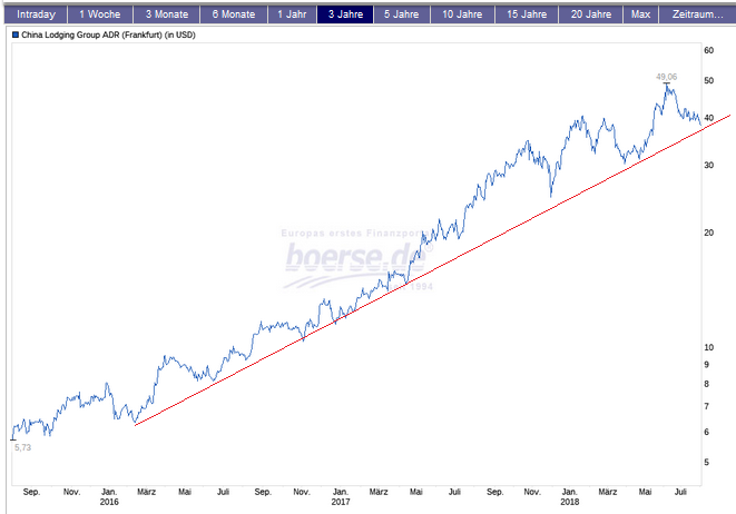 ich bin vor einigen Monaten durch eine Börsenzeitschrift auf China Lodging aufmerksam geworden und finde den Wert nach wie vor spannend. Grundsätzlich boomt die Reisebranche ja, China Lodging ist m.E. einer der Profiteure. Man fokussiert sich auf das mittelpreisige Hotelsegment, Ziel sind 10.000 Einheiten in den kommenden Jahren. Positiv wirkt sich der fragmentierte Markt aus, da 77% der Hotels keiner Marke angehören.
