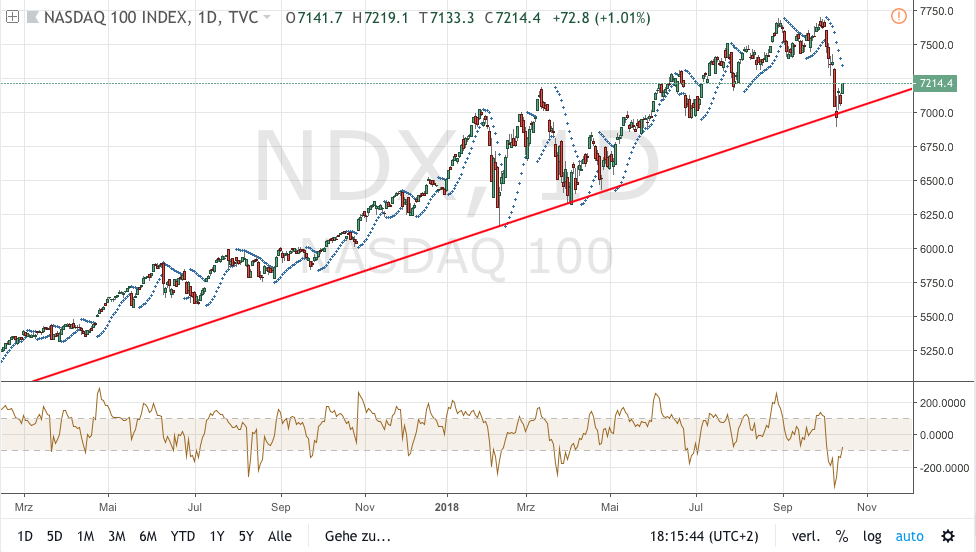 Nasdaq 100 LI 7310 Grüne Linie wichtige mittelfris­tige Unterstütz­ung hat gehalten.