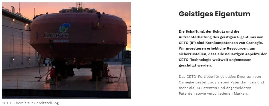 Carnegie ist Eigentümer und Entwcikler der CETO-Technologie ,die Energie aus Meereswellen erfasst und in Elektrizität umwandelt.....SACHEN GIBTS?????