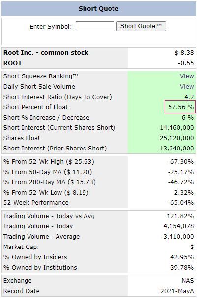 Die HF shorten im Moment wie verrückt, z.B. Technologie, Spacs, AMC, GME. Bei AMC und GME haben sie sich in eine Falle manövriert, die Anleger halten mehr !!! als die ausgegebenen Aktien, obwohl die Shortquoten niedriger angegeben werden als bei Root. Die Zukunft von Root sieht aber gut aus, die Verbindung von Versicherung und SaaS, z.B. Fuhrparklogistik. Die Frage ist ob die HF hier auch so agieren wie bei AMC und GME. Leider gibt es bei Root keine so aktiven Communities wie bei den vorgenannten, obwohl Root wirtschaftlich die besseren Perspektiven hat. Aber auch gute Unternehmen habe keine Chance wenn sie die HF fertigmachen. Bei so kleinen schaffen sie das, anders wie Tesla.
