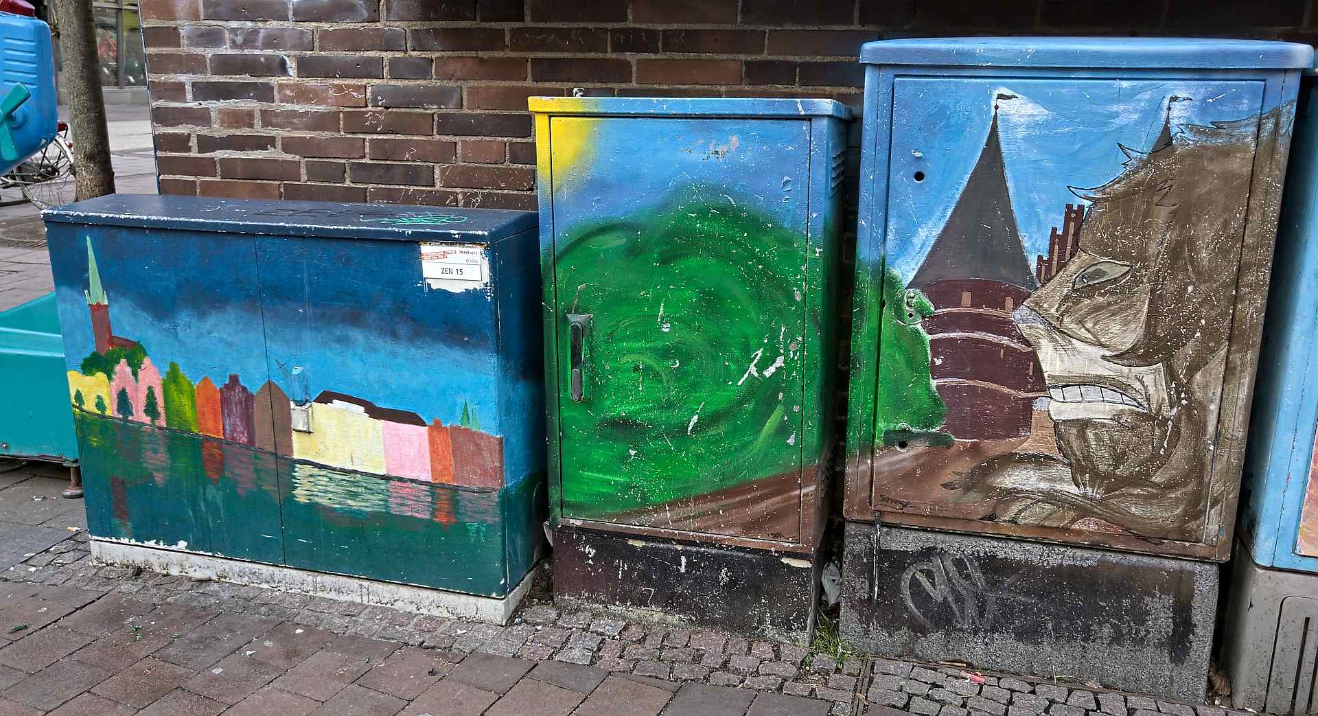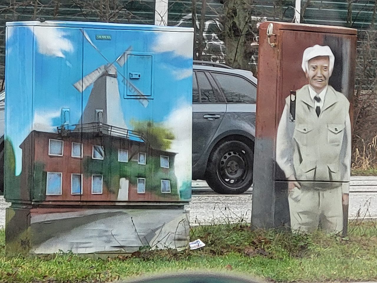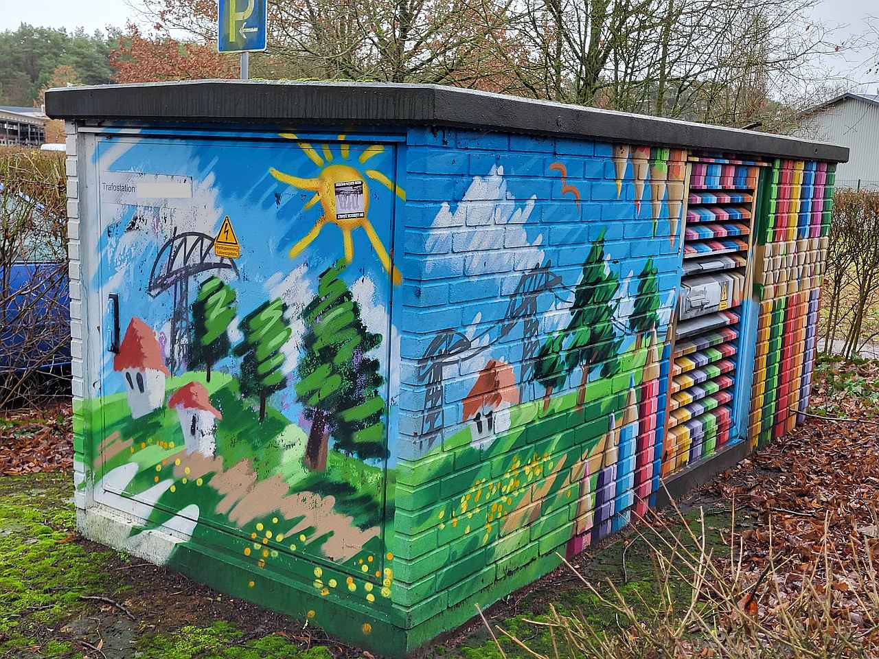 Bei uns im Norden ist man bereits dazu übergegangen, diese kleinen oder mittelgroßen Verteiler "zu tarnen". So sind sie nicht für jeden eindeutig als Verteilerkasten oder Trafostation zu erkennen. Fügen sich harmonisch in die Umgebung ein. Oft werden sie allerdings mit "Tags" sogenannter Graffitikünstler / -idioten verunstaltet.