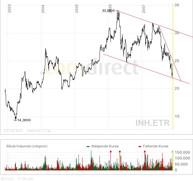 Die Aktie gewinnt derzeit 6,67 Prozent auf 23,52 Euro. (30.11.2007/ac/n/nw)