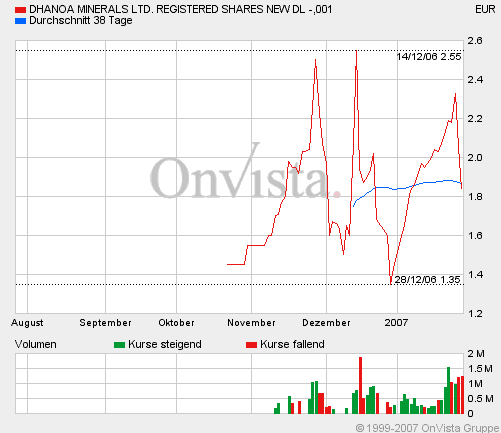 Dhanoa fällt auf ca. 1,40-1,50 Euro