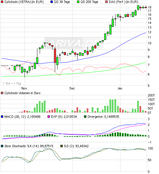 Anleger, die in der CytoTools-Aktie engagiert sind, sollten nach Meinung der Experten von "BetaFaktor" bitte unbedingt mit Stopploss arbeiten, das man im Bereich 14 bis 15 Euro ansiedeln sollte. Das neue Kursziel laute nun 25 Euro. (Ausgabe 03/09b vom 15.01.2009)"