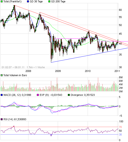 Es ist nur zu hoffen, dass TOTAL die Marke von 41€ bald knackt, bevor der Markt wieder schwächer wird.