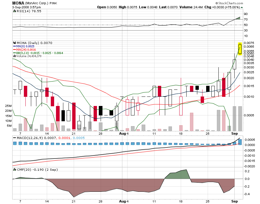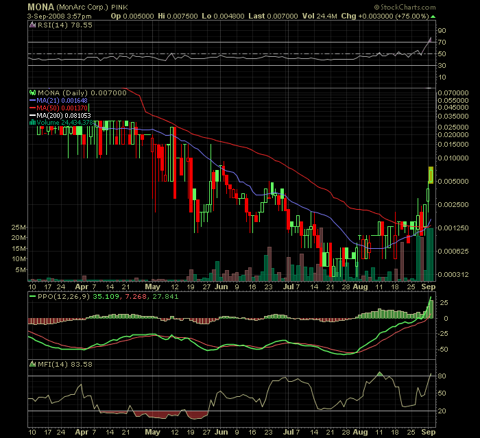 Sep 1, 2008 Pink OTC Markets News Service Beijing, China— Beijing, September 1 2008 - MonArc Corporation www.monacorporation.com (Pink Sheets: MONA - News) is pleased to provide this corporate update to its shareholders and followers. Although parts of this update may not be news worthy to some of the company's investing public, the issuer has disseminated this update through a limited reach Pink Sheet news service. Nonetheless, the company sees this as a great way to convey daily activities and updates to its shareholders and followers via this "NOTICE OF INTEREST TO GLCC SHAREHOLDERS (UPDATE NOTICE)" The issuer would also like to use this opportunity to express its gratitude to its followers and shareholders on their patience, and fortitude while the company engaged in these complex transactions and relatively reserved itself to a quiet period on these topics which is now coming to an end. On or about June 20, 2008 the issuer completed the private placement. The company utilized some of these funds, to seek growth opportunities primarily in China. A Chinese based Oil company was identified. At the same time the issuer looked at acquiring a hotel broadband ISP. The issuer posted the complete business plan of Hubei Chuguan Industry Co.Ltd on the FILINGS section of Pink Sheets. The issuer also filed a simplified short version (due to the size of the full version 7 megs) The issuer's mindset was to eventually spin off or sell off these companies and to obtain a larger position in the Oil Company. A Chinese based marketing company MCD was also targeted however proved to be a much larger acquisition target that the issuer could not absorb. In the course of negotiations and discussions the issuer became the subject of acquisition. The issuer consulted with its board members and advisors and began the exploration of a buy out of the controlling position. The transaction is set to close with MCD on or about September 11, 2008. MCD is the process of developing its English based web site that will link in from the issuer's corporate web site. The formal announcement, the web site launch of MCD and the complete new management and board appointment will take place in 30-45 days (transition period) or thereabouts from September 11 2008 scheduled closing day. The transition period will allow the current MONA management to resolve any outstanding matters, and sale of remaining assets. The current MONA management has negotiated an autonomous cession of PP365.Com and its interest in Inotrek ISP interest from MCD after September 11 2008 to allow the now current management to find a suitable purchaser for these assets. The company is currently negotiating with 1 purchaser on all cash basis. The entire proceeds of this sale will be paid out to current MONA shareholders. No pay date has yet been set. On the status of other asset disposition, the issuer has identified 1 purchaser for its Oil Company position. The Oil Company (Hubei Chuguan Industry Co.Ltd) is part of a larger conglomerate with revenues in the 80-100 million dollar range and assets in the 400-500 million range. The issuer's stake is in the Hubei Chuguan Industry Co.Ltd (Environmental) division with current revenues of about 10 million dollars and assets of about 20 million. The issuer's corporate advisors and management believes that a dividend of 10-12 million dollars to MONA shareholders may be achieved in this transaction. The issuers current secretary and X CEO Mr.Garr Winters, who was instrumental in the Hubei Chuguan Industry Co.Ltd transaction and the separate MCD transaction, has also been chosen by the MONA board members and Mr.Chan the current MONA CEO to quarterback these 2 separate dividend payouts to MONA shareholders. Mr.Garr Winters said "Although it is too premature to say, when all is said and done, with these asset sales the dividend could topple 12c to 18c per share in total" Mr.Winters has indicated that he will not seek the appointment with the issuer in any capacity after the merger and asset sale. Under the terms of the MCD purchase agreement, MCD has made a condition prescient that Mr.Winters remain as a transitional officer for North America until the MCD board can select a new suitable North American representative. The issuer and management are of the opinion that some amicable and a workable solution can be found. Mr.Winters is currently acting as an advisor, and secretary to several small cap publicly traded companies, and in the process of being named as a CEO of an OTCBB company engaged in transportation services. Moving forward (Corporate Compliance) MCD has indicated that it is desirous of obtaining the Pink Sheets Current Issuer status. Currently all documentation has been filed and under review with Pink Sheets. The issuer has heard back from Pink Sheets and Pink Sheets compliance Department is seeking a more detailed opinion from lawyer. The issuer has retained new legal advisor from North East USA, who is currently reviewing all documents before a 2nd legal opinion can be provided. MCD is also eager to achieve a solicited issuer status. Its new management continues to work with its primary market maker Aurora Financial to achieve this and has instructed its legal advisor to assist in this task. A 2nd market maker West Minister is also assisting in an advisory capacity. MCD is a relatively large company in terms of revenues, sales, and operations. MCD sees MONA as a stepping stone, into the entry of the public markets. MCD is eager to see the successful completion of the Corporate Compliance stage. Once the Corporate Compliance is completed MCD next logical step would be to have MONA reinstate itself to being an SEC reporting issuer. MONA delisted from being an SEC reporting issuer by filing a 15-12G form on or about May 17 2008. MCD is desirous to add its 7,000 plus current shareholder base to MONA. Under the rules when an issuer surpasses 500 shareholders it must become a solicited issuer. Mr Yong Chan 