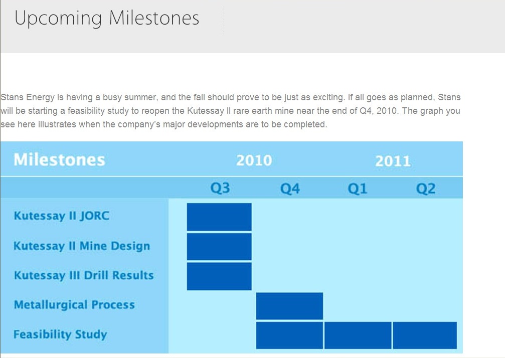 Eine Beschreibung der Produktion von Lanthaniden steht ab Seite 14 im unteren Bereich dieses Links: http://www.rz.uni-karlsruhe.de/~dg21/geochem0304/SE.pdf. Daraus irgendeinen zeitlichen Zusammenhang der Produktionseinrichtung abzuleiten liegt mir fern, aber der Prozess ist bekannt und damit machbar. Meiner Einschätzung nach wird sich Stans sehr beeilen in Produktion zu gehen. Das hat Gründe die im letzten Punkt liegen.