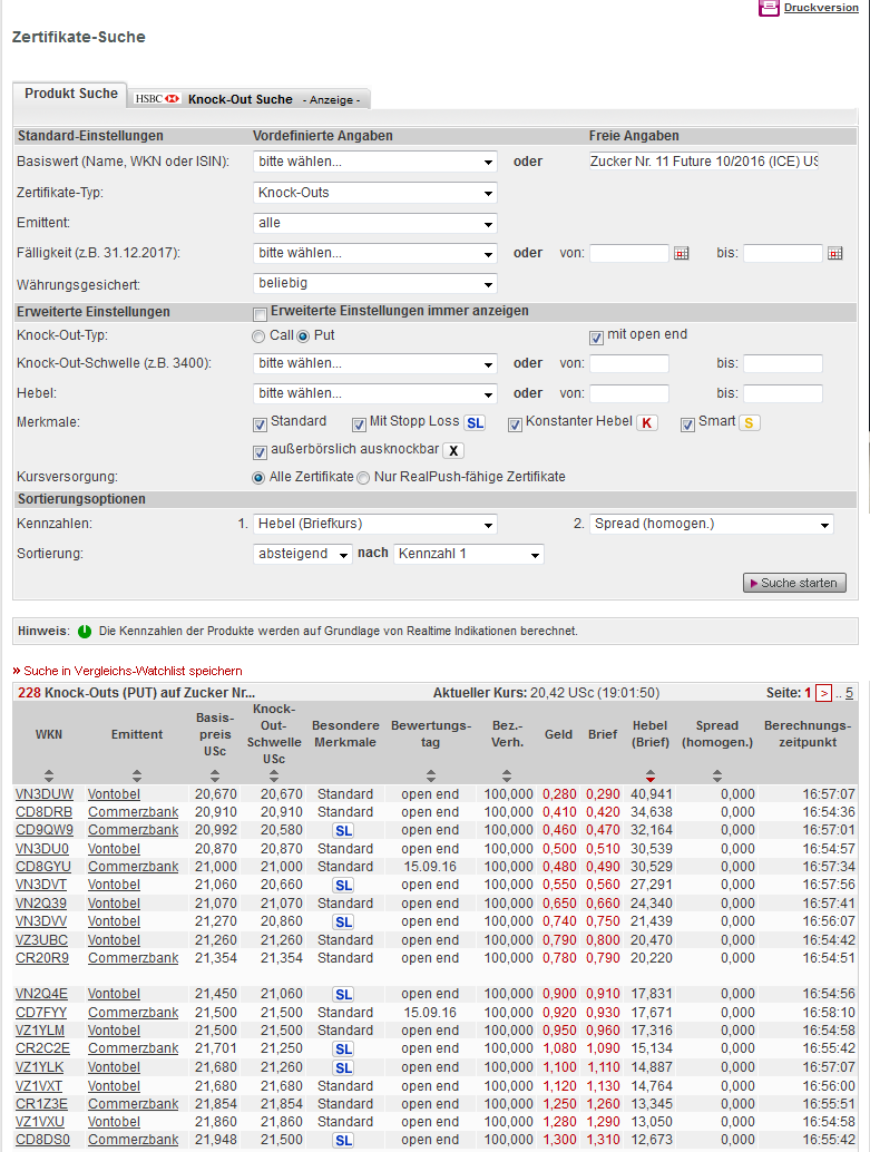 Zunächst über zertifikate/os oder Hebelprodukte bei onvista, dann auf gesuchtes Derivat. In der Suchmaske Wert eingeben/aussuchen.