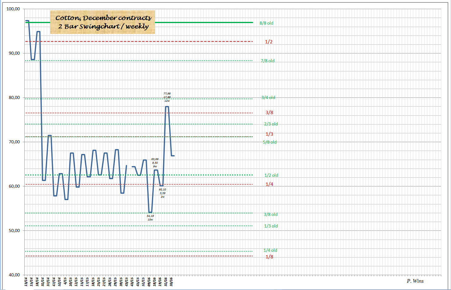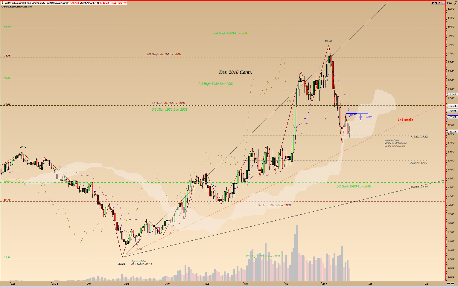 Swingchart spricht klare Sprache, dass hier, nach langer Dursstrecke, wieder Trend aufgetaucht ist. Übrigens seht typisch für Baumwolle, habe die Daten seit 60er Jahren. Jahrelang verweilt in der Seitwärtsbewegung und dann mehrere Jahre schnelle Bewegungen, in eine oder die andere Richtung.
