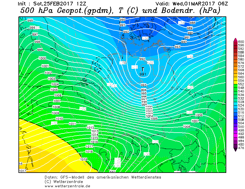 Hier kann die Strömung sehen die den Süden gerade aufwärmt.