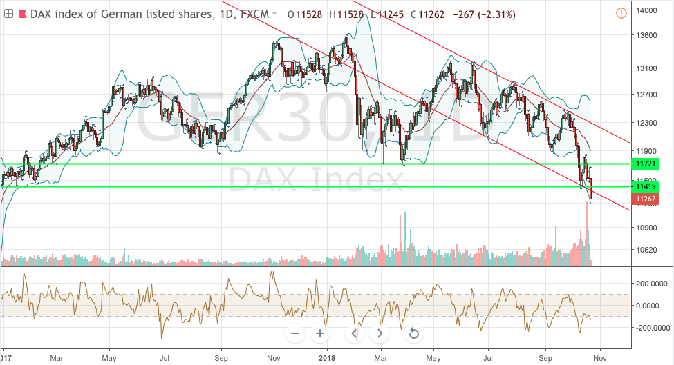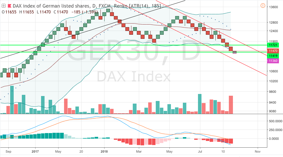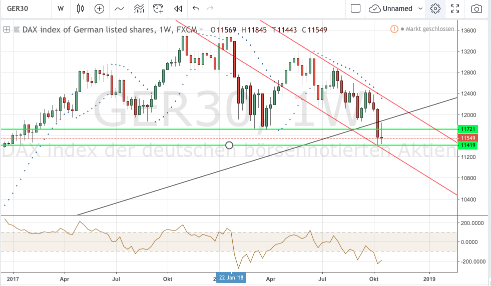 ab 9:00 Uhr Xetra-Start mit Gap-Up, Dax-Stand aktuell: 11.415 (genau auf unterster grüner Linie)