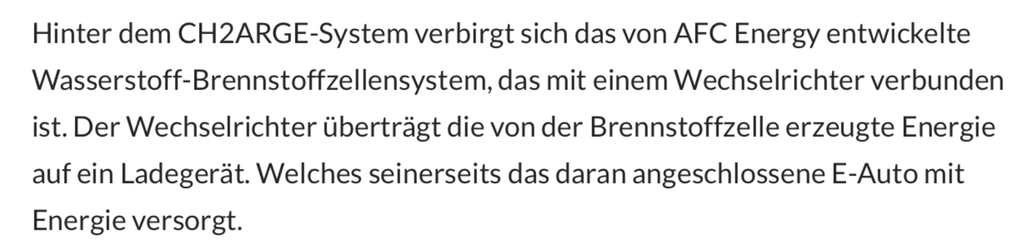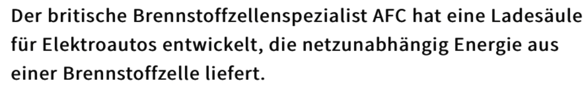 Alleinstellungsmerkmal auf dem Markt. Da die Produktion von Elektro Fahrzeugen in aller Munde ist und nicht überall Ladestrom vorhanden ist, wird sich AFC behaupten können auf dem Markt. Der Zeitplan in Zusammenhang mit der e Fahrzeuge Entwicklung ist auch OK.
