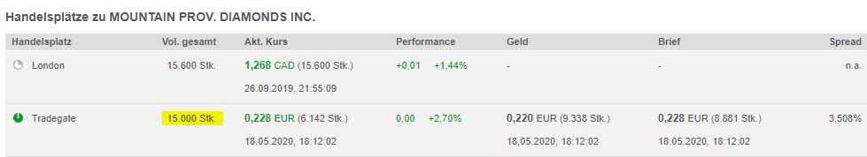 Ich halte meinen Restbestand, denn ich gehe davon aus, daß die Zahlen sich verbessern werden, wenn die Coronakrise überwunden ist. Mountain Province Diamonds hat sich als resilient genug erwiesen, mich in meiner langfristig positiven Einschätzung von sich zu überzeugen.