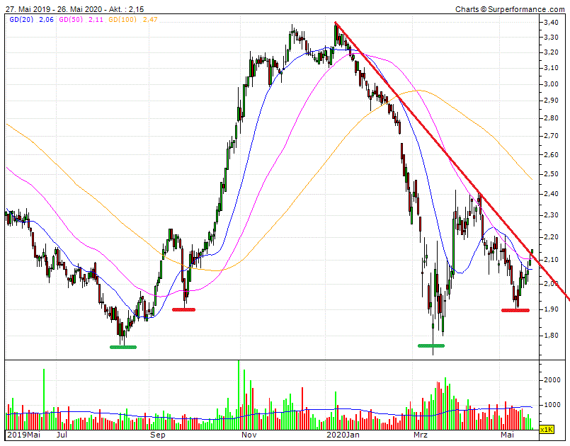 Ausbruch auch über 2,2€. Damit dürfte man mindestens bis 2,42€ laufen.