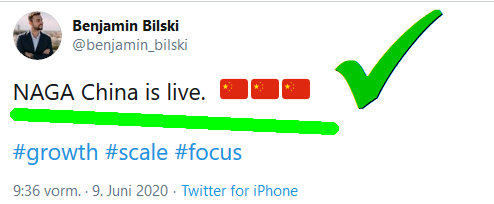 auch das China ein Treffer wird. Eine Steigerung der Kundenzahlen bis Herbst ist gut für Naga Pay.....