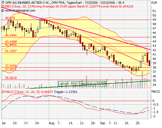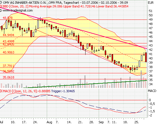 OMV hängt am Widerstand bei 40,- €. Wenn der fällt, sind wahrscheinlich ziemlich schnell die 45,- in Sicht (Postings # 77, # 81).