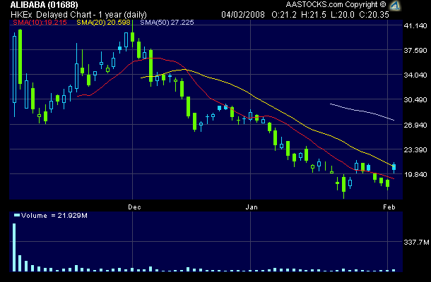 dazu kommt, dass Yahoo eine 20% Beteiligung bei ali hat, jedoch der deal mit MCSFT u/o google noch nicht klar ist.....