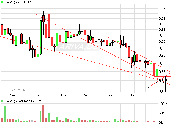 es hier nochmal deutlich. conergy wird nicht fallen. es ist im chart eine deutliche stabilisierung erkennbar, auch wenn dies einige nicht wahrhaben wollen! es ist beim kurs und von den daten her, erhebliches aufwärtspotenzial zu erkennen. ich hab auch keinen bock mehr dieses blödsinnige geunke von analysten oder ulms einstellung gegenüber conergy mit zu treiben. meine position steht! conergy wird erheblich steigen. und wenn dem so ist klinke ich mich aus der diskussion aus, weil ich dieses gelabber nicht mehr ertragen kann!