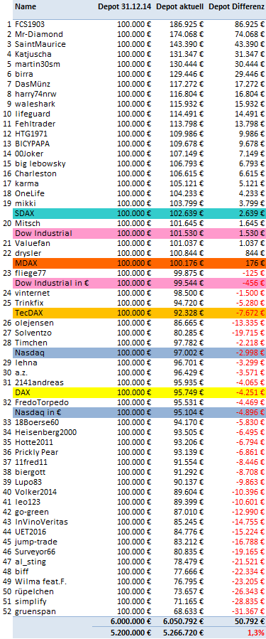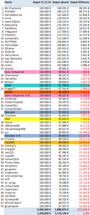 das kat im Depotspiel vorn ist, aber im Investor ziemlich abschmiert. Das sind ja auch glaube die Werte die er in seinem Blog präsentiert.