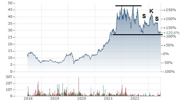 Ich habe damals auch aufgrund des bombastischen Wachstums mit höheren Kursen gerechnet aber nachdem der Kurs dann das dritte oder vierte Mal kein neues Hoch erreichen konnte, hätte man zumindest mißtrauisch werden sollen. Gebe gerne zu, dass ich die Wachstumsabschwächung so schnell und in der Höhe nicht vorhergesehen habe, aber da kann dann eben die Charttechnik doch helfen, dass man zumindest seine Meinungen hinterfragt. Da war die Börse eben schlauer und hat die etwas schwächeren Zahlen vorhergesehen, während für mich noch alles rosig aussah.