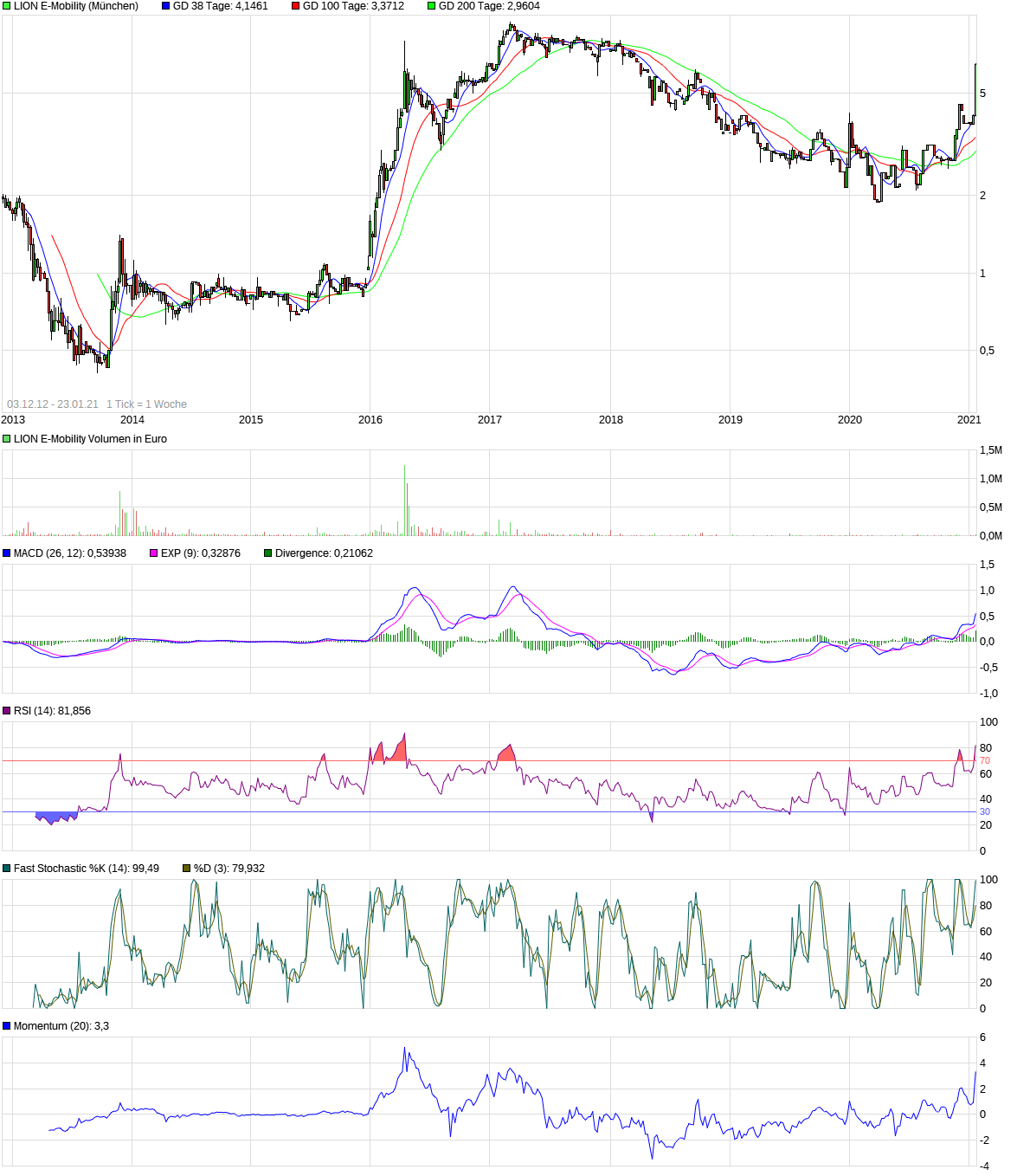 "Auch nach dem heutigen Anstieg der Aktie bringt es Lion E-Mobility nur auf eine überschaubare Marktkapitalisierung von knapp 47 Mio. EUR, das KUV 2021 liegt demnach bei 1,6. Da werden im Sektor bereits ganz andere Multiple gezahlt."