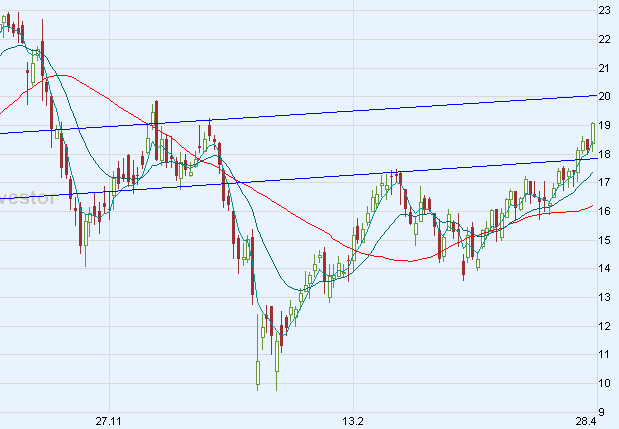Steigt die Aktie jetzt nachhaltig über 16,50 Euro an, könnte eine Kaufwelle einsetzen und die Aktie deutlich bis 19,60 - 19,85 und darüber 23,10 Euro ansteigen. Mittelfristig wären darüber hinaus weitere Gewinne bis 28,00 - 30,00 Euro möglich.
