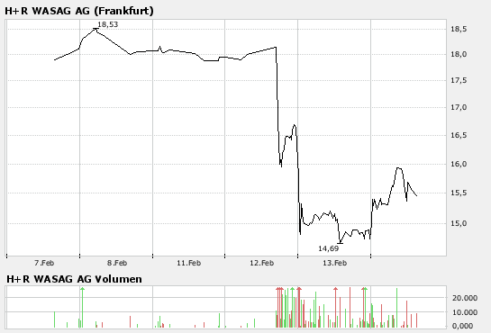 insbesondere, wenn man den eigenen Aktienanteil aufstocken will. Ich bin zwar zur Zeit nicht in WASAG investiert, trotzdem empfinde ich es als Sauerei, wie hier vorgegangen wird. Erst schieb man den erfolgreichen VV ab, der die psoitive Etwicklung der WASAG in den letzten Jahren bewirkt hat -> Umkehr des positiven Kurstrends in einen negativen und jetzt eine reduzierte Jahresprognose -> Fortsetzung bzw. Beschleunigung des negativen Kurstrends.