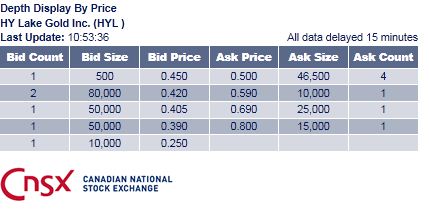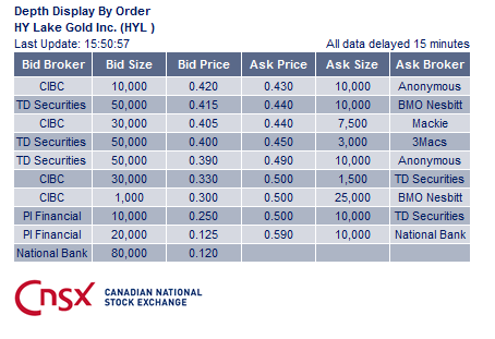Red Lake is one of the world’s most prolific gold mining districts and home to many established (Goldcorp Inc ) as well as upcoming junior gold exploration companies. Some notable examples include, Premier Gold Mines Ltd (TSX: PG) (TSE: PG), Rubicon Minerals Corp. (TSX: RMX) (TSE: RMX) and Claude Resources Inc (TSX: CRJ) (TSE: CRJ). Hy Lake Gold has assembled several significant property packages totalling approximately 3,300 hectares in west Red Lake. The properties cover a 12 kilometre distance along the west Red Lake Trend, containing 3 former producing gold mines, and the Company continues to explore these properties both along strike and at depth. The grades being reported by the company has been impressive. The company is working to move from CNSX exchange to more established Toronto Venture Exchange which would get this story lot more attention.
