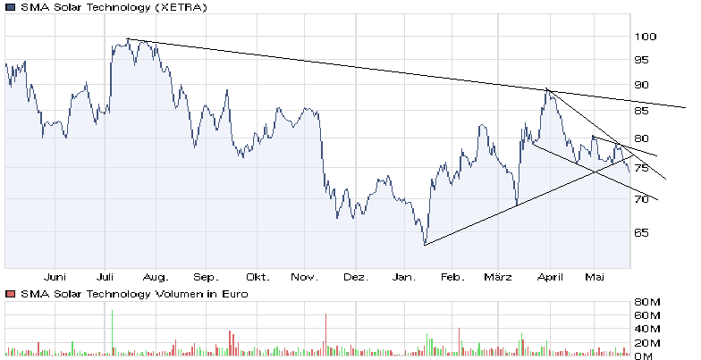 Gegenwärtig wird SMA von den meisten Analysten mit einem "halten" bewertet. Das entspricht auch dem Marktgeschehen. SMA hat, gemessen an der Marktkapitalisierung, gegenwärtig eher geringe Umsätze. Trotzdem denke ich, dass die temporären bad news weitestgehend eingepreist sind und die Chancen für steigende Kurse in den nächsten Jahren eher höher sind.