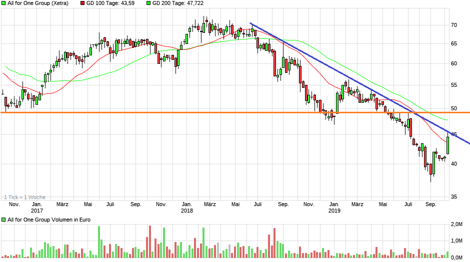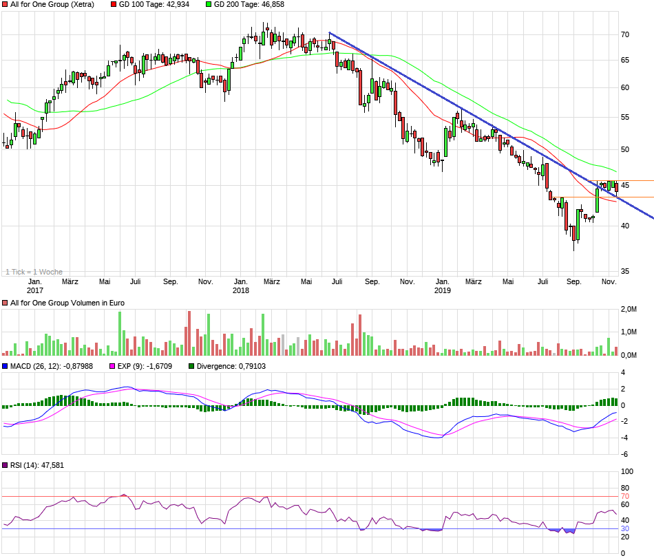 Heute, wo viele deutsche Nebenwerte ordentlich wieder Prozente lassen, steht A40 sehr stabil. Ja über 46€ gehts in die heiße Phase und den GD200 bei 47,6 zu nehmen wäre auch mal ein Signal. Immerhin lief man jetzt 16 Monate ohne Chance unterhalb bergab.