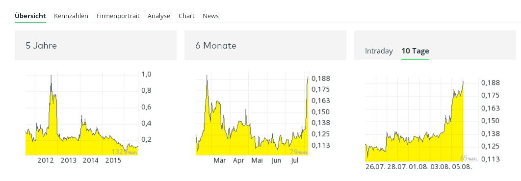 passiert irgendwas. Umsätze steigen plötzlich stark an, der Kurs auch.