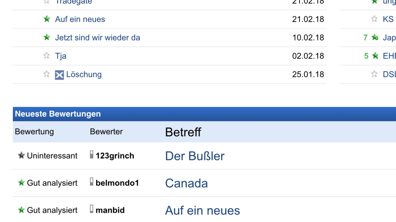 Ich bin über finanzen.net hier angemeldet, da sieht man leider nicht wer einen wie bewertet hat.