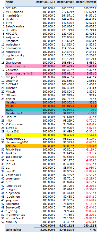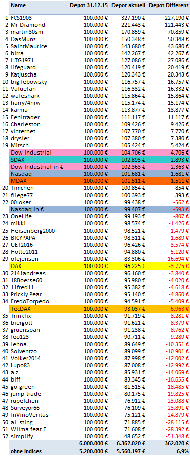 Da sowohl der Split als auch der falsche Kurs bei S&T auf einige Depots deutliche Auswirkungen haben, werde ich versuchen, in den nächsten eine aktualisiserte Auswertung zu machen.