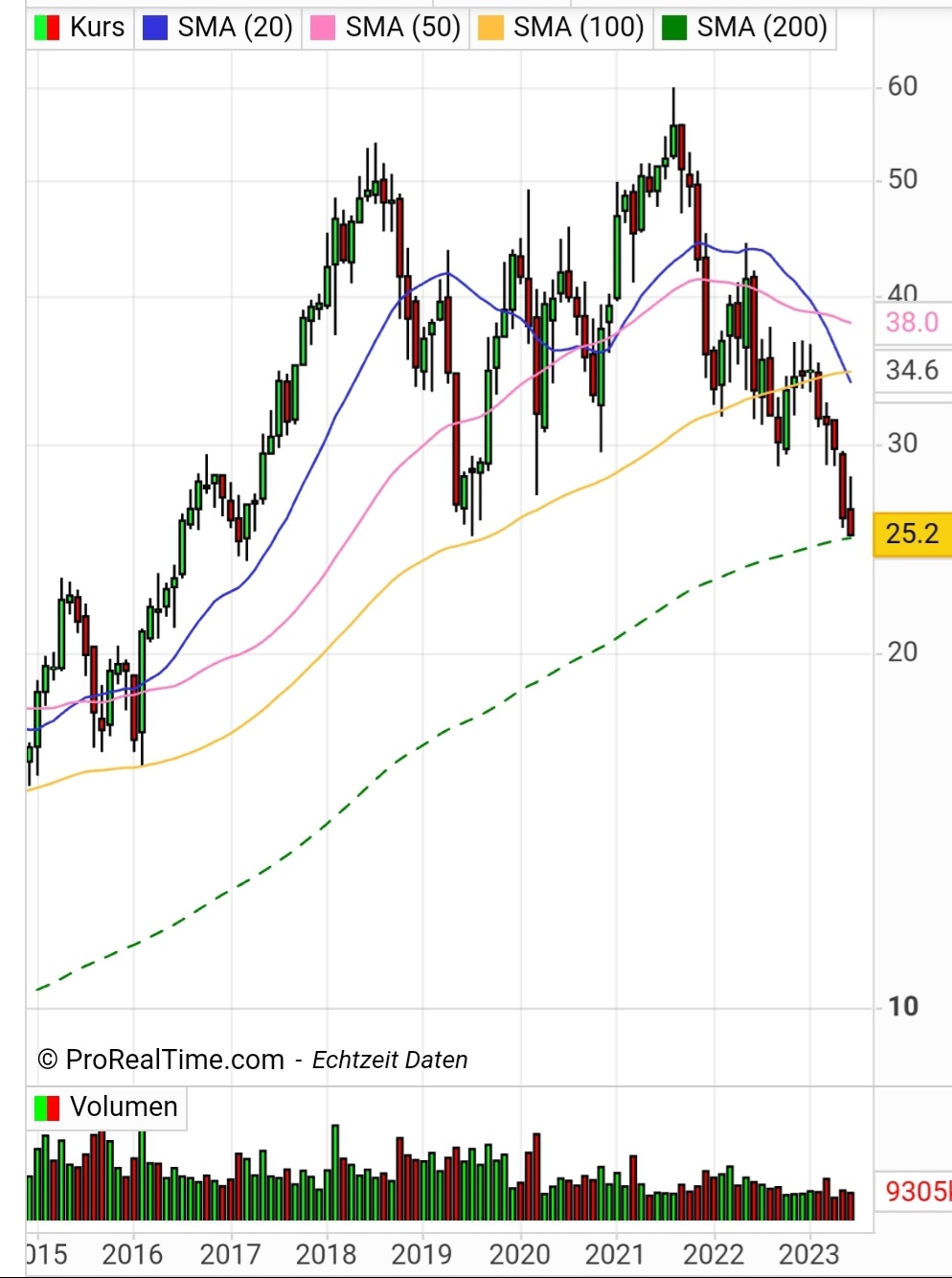 ... wie hier abverkauft wurde. So langsam dürfte aber so viel Negatives eingepreist sein, dass ein Boden gefunden werden kann. Heißt aber nicht, dass nicht noch ein finaler Abverkauf folgt, bevor der Kurs dann wieder zulegt. Ich bleibe dabei und würde gern noch mal bei 20 kaufen