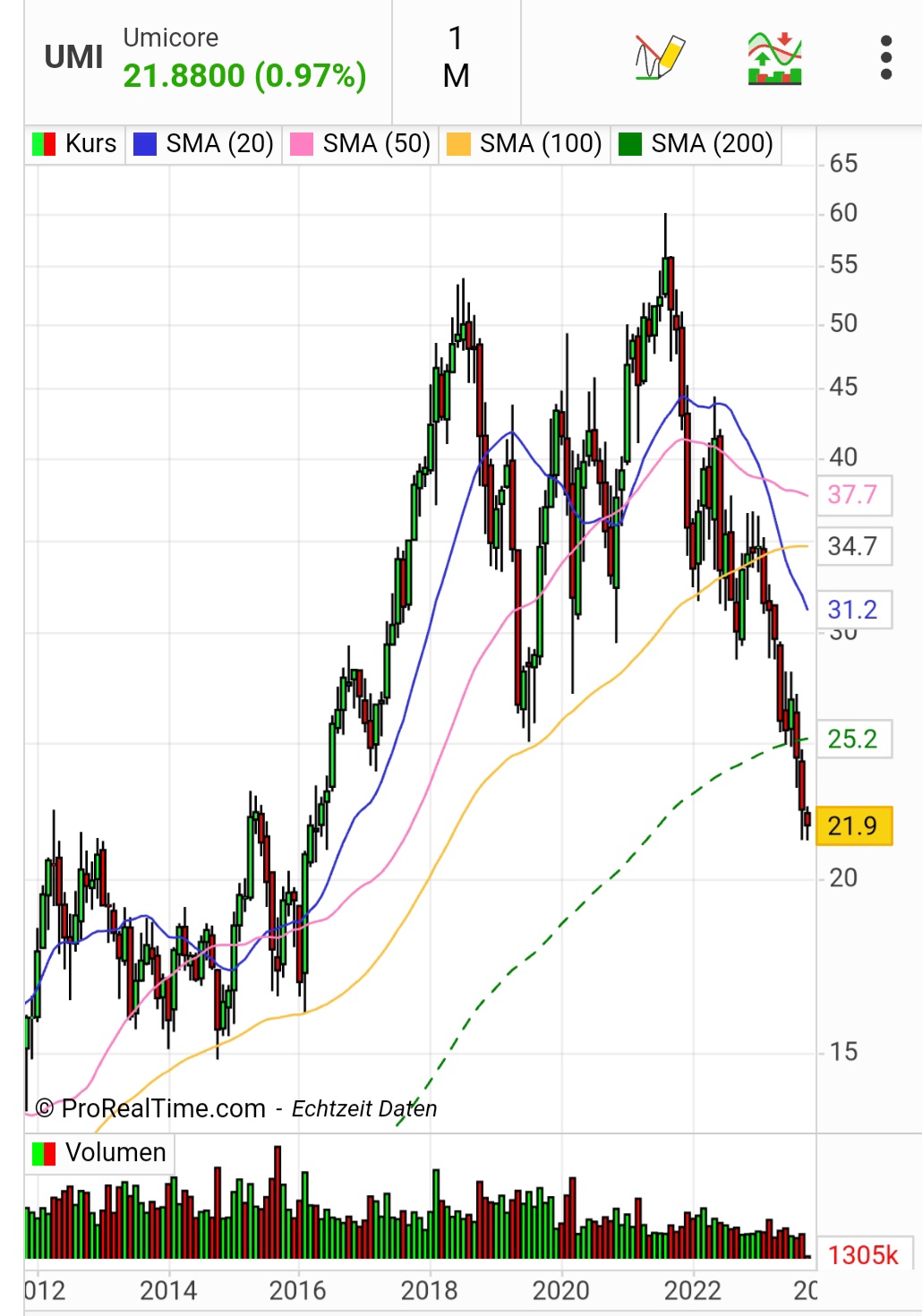 Bin gespannt ob welche Höhen der Trend zu immer mehr Recycling Umicore noch treiben wird. Mittelfristig sollten hier neue Allzeithochs erreichbar sein.