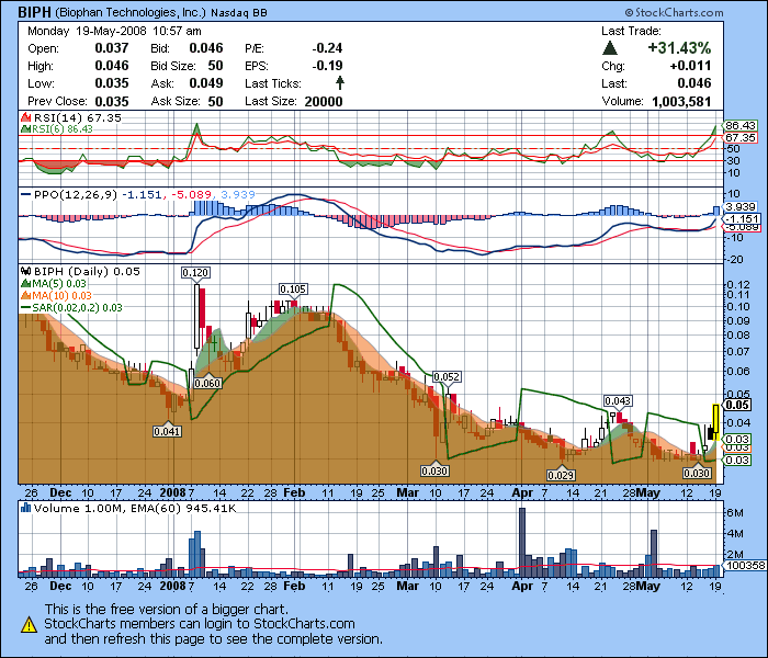 Natürlich ist Biophan ein Start up Unternehmen, wie 1000 andere an der OTC und wird es wie 1000 andere auch auf ewig bleiben oder verschwinden. Und natürlich gibt es auch eine minimale Chance das die doch mal irgendwannn was aus dem Hut zaubern, ich frage mich dann nur, warum findet man keine Investoren und muß die Patente verscherbeln.