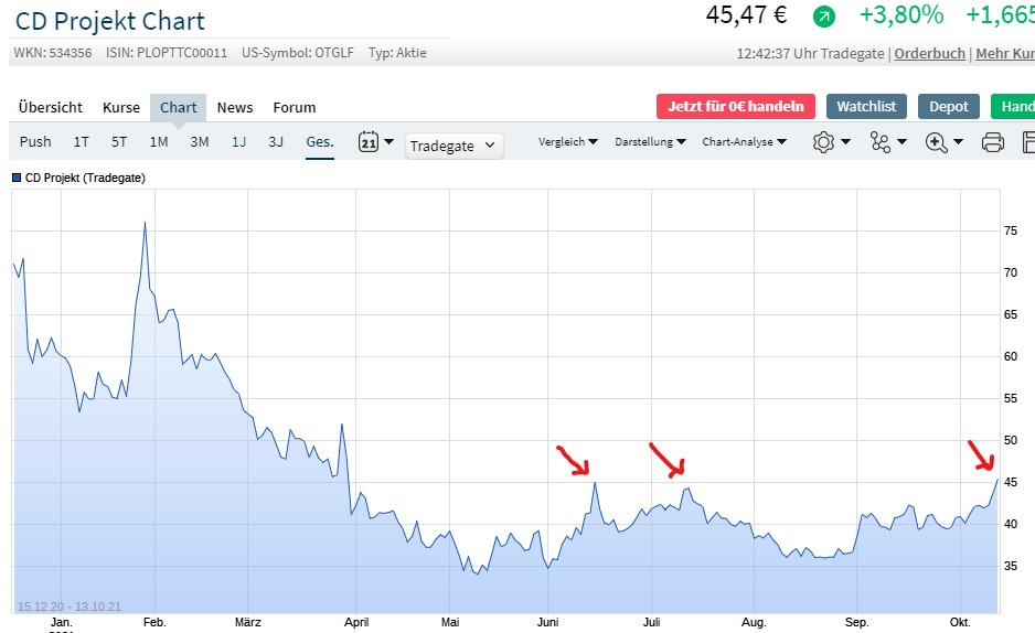 Wenn ich mir alle Gaming Aktien anschaue, hat sich CD sehr gt gehalten die letzten Wochen.