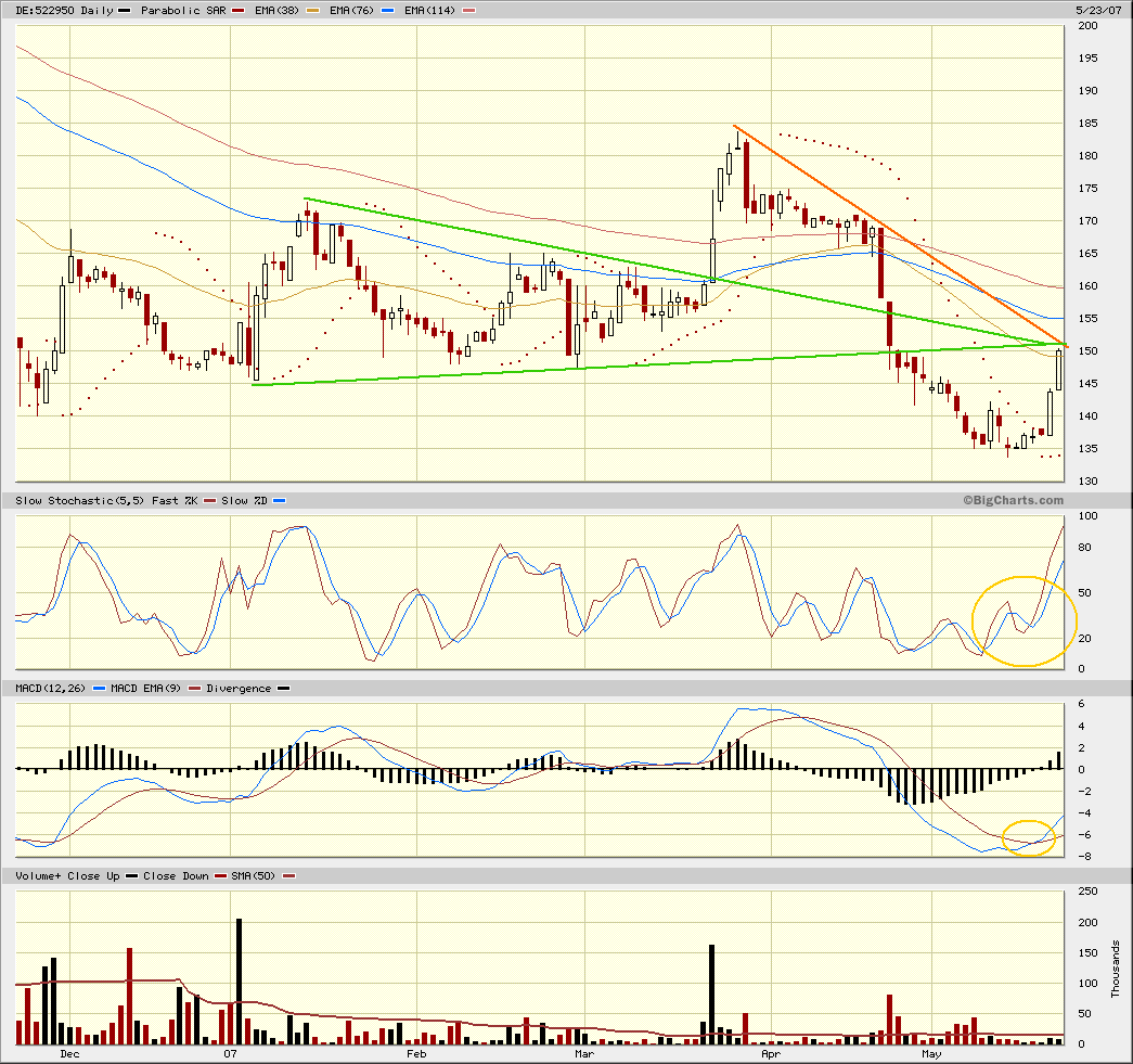Charttechnisch befindet sich die Aktie auf interessantem Niveau. Der Kurs hat eine A-B-C Korrektur vollzogen und nun mit einem Ausverkauf auf dem starken Unter-stützungsbereich von 140 EUR aufgesetzt. Der MACD ist (noch) positiv divergent und rät schon seit Wochen zum Einstieg in die Aktie.
