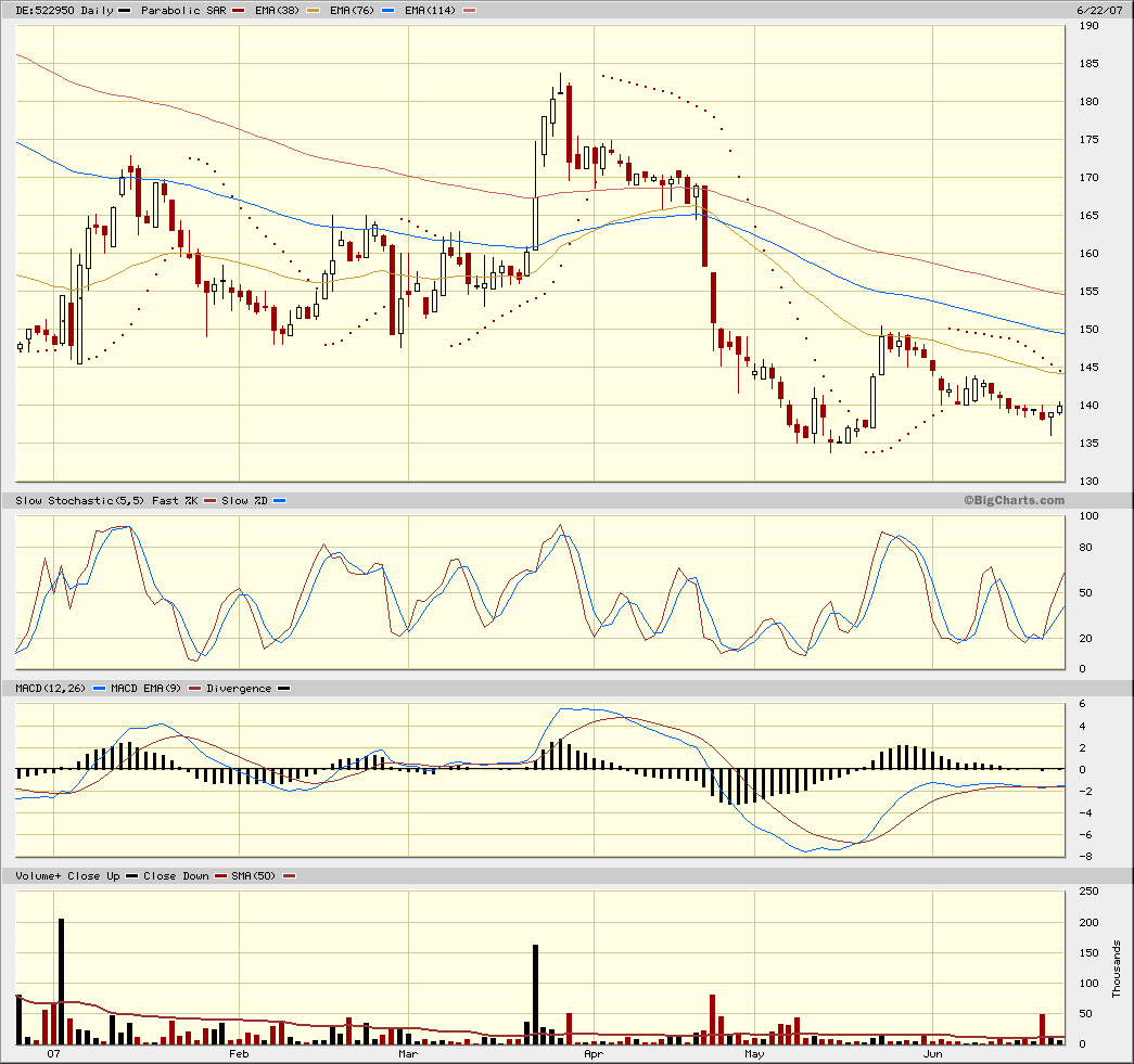 Doch seit einiger Zeit ist der Motor des Unternehmens ins Stocken geraten. Die Wachstumsraten haben sich reduziert und der Aktienkurs hat sich von seinem Hoch nahezu halbiert. Die Frage, die sich viele Anleger nun stellen: Ist die Wachstumsstory bei Bijou Brigitte beendet oder wird sie weitergehen? Schaut man allein auf die letzten News, so könnte man geneigt sein, an das Ende zu glauben. So hat das Unternehmen am 26. April Daten für das erste Quartal 2007 veröffentlicht. Das Unternehmen musste auf