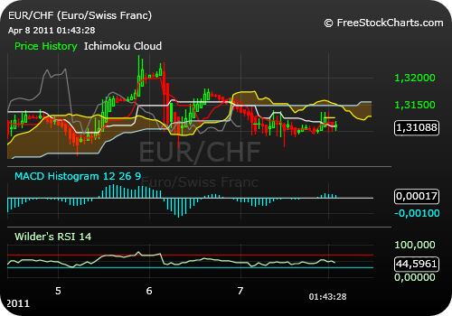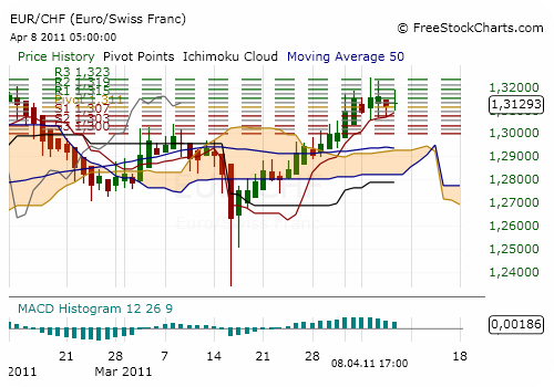 Krise in Lybien tritt in den Hintergrund. Zinsfantasie in der Eurozone steigt - ich bin diese Woche long im Euro zu CHF. An einen Zinsschritt glaube ich hingegen nicht, da der Euro gegen den USD schon zugelegt hat und damit die Inflation schon etwas gesunken sein sollte.