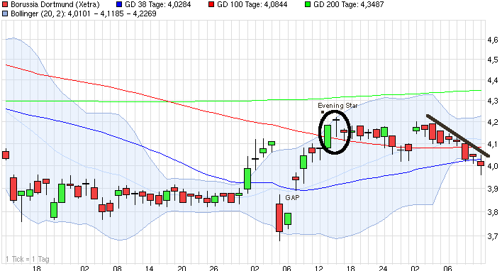 Kurs 4,01 EUR. Wenn das Spiel gegen Köln verloren geht gehts wieder 3 - 4 Prozent runter. Schade, Schade, Schade...